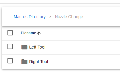 The macro is located in the "Macros" tab, under "Nozzle Change". There is a separate folder for each tool, and a separate macro for each nozzle size. HartSmart Products recommends running cleaning filament through the tool before the swap process. The nozzle change macro will prompt to run cleaning filament through the nozzle automatically.