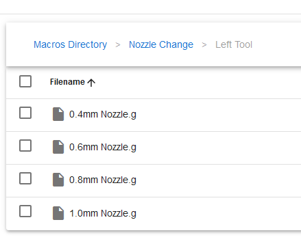 Select the size of nozzle you are switching to under the correct folder. Be sure to have the nozzle torque wrench handy for the swap process.